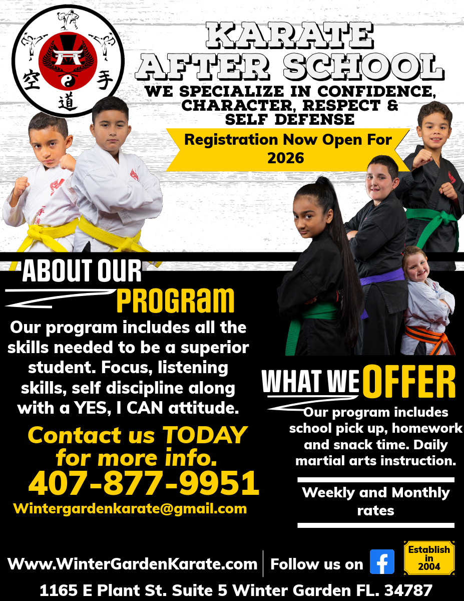 Winter Garden Karate has been offering instruction and training in Karate since 2004. Longest family own martial art studio in Winter Garden. Headed by Kermit Gonzalez (Chief Instructor) and a staff (Son) Li Gonzalez & (Daughter) Yaidel Gonzalez professional instructors and managers.